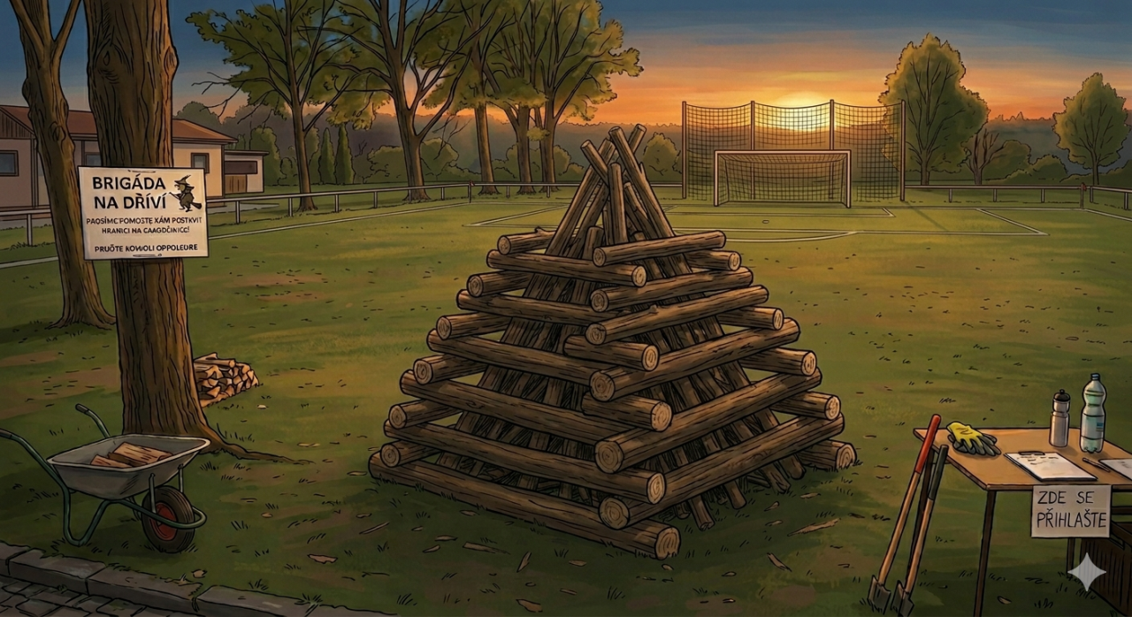 V SOBOTU 25.04.2026 NA HŘIŠTI TJ SOKOL CHLUMÍN OD 09:00 HODIN PROBĚHNE BRIGÁDA - PŘÍPRAVA HRANICE A DŘEVA NA AKCI "PÁLENÍ ČARODĚJNIC"